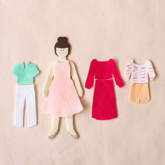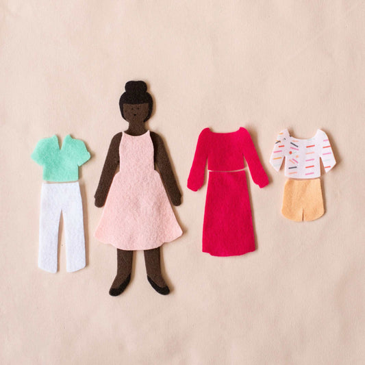 caramel felt doll travel set - a modern paper doll set