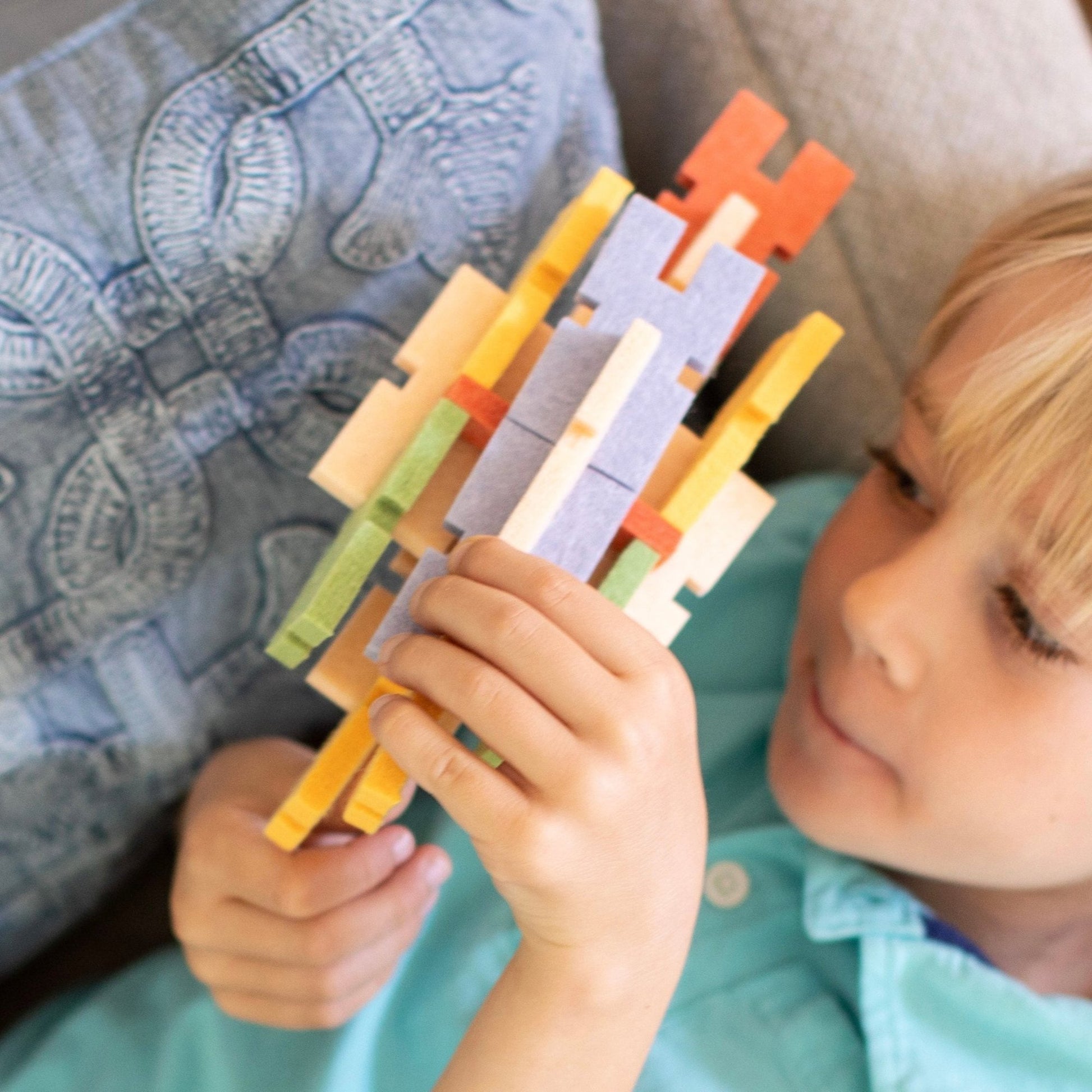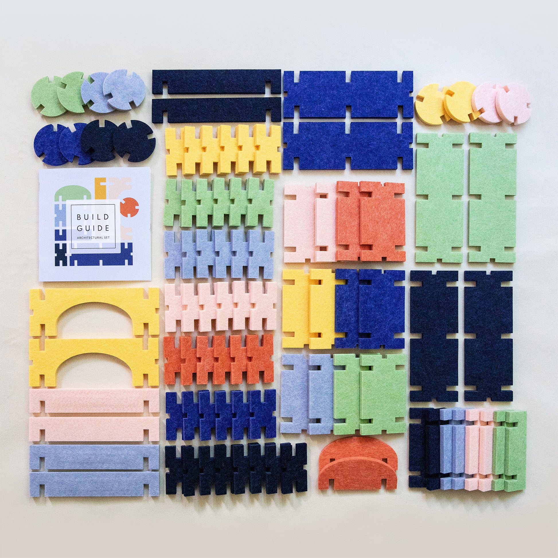 This is the ultimate building set for the most imaginative builder; the combination of our most inventive products provides endless building possibilities! Durable, lightweight and sturdy, our felt blocks are made from recycled water bottles to be delightfully quiet and easily washable.