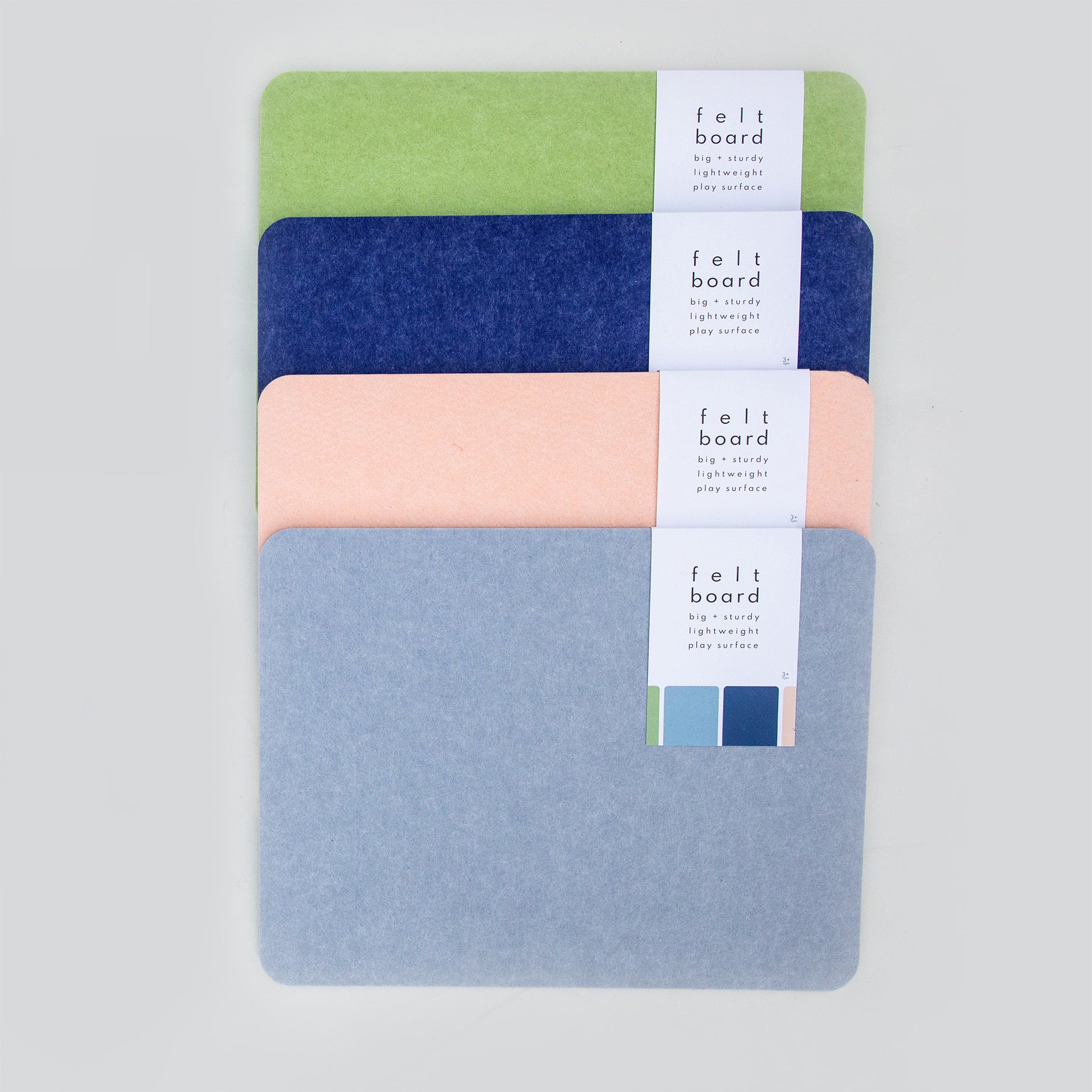 Our bestselling play surface, designed to contain pieces and anchor play. This oversize board is available in four classic colors: bright ocean blue, soft periwinkle, cheerful pear, and charming peach.