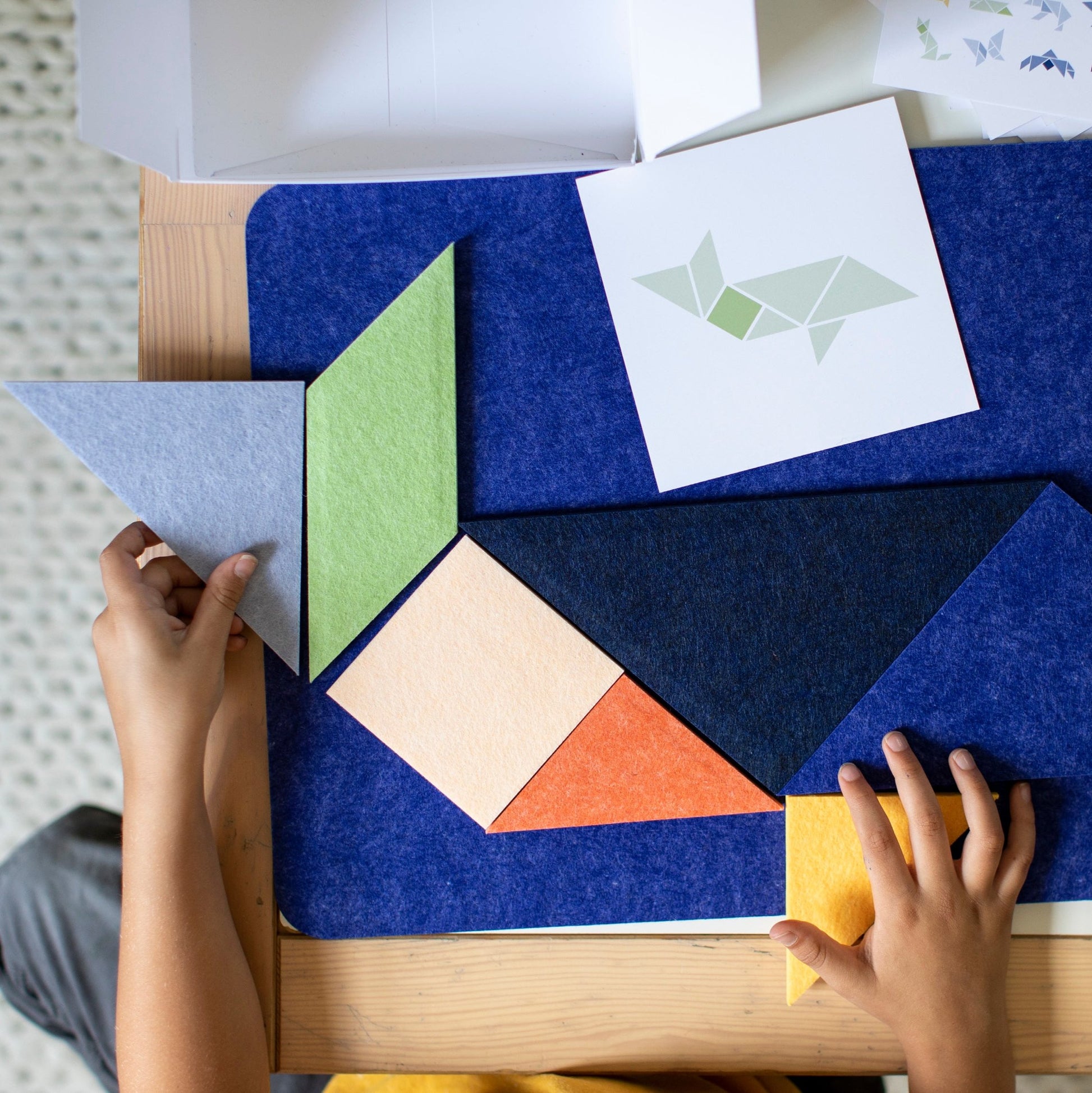 Includes the 7 necessary tangram shapes and 23 durable pattern cards, featuring both an easy and hard version of each build target.