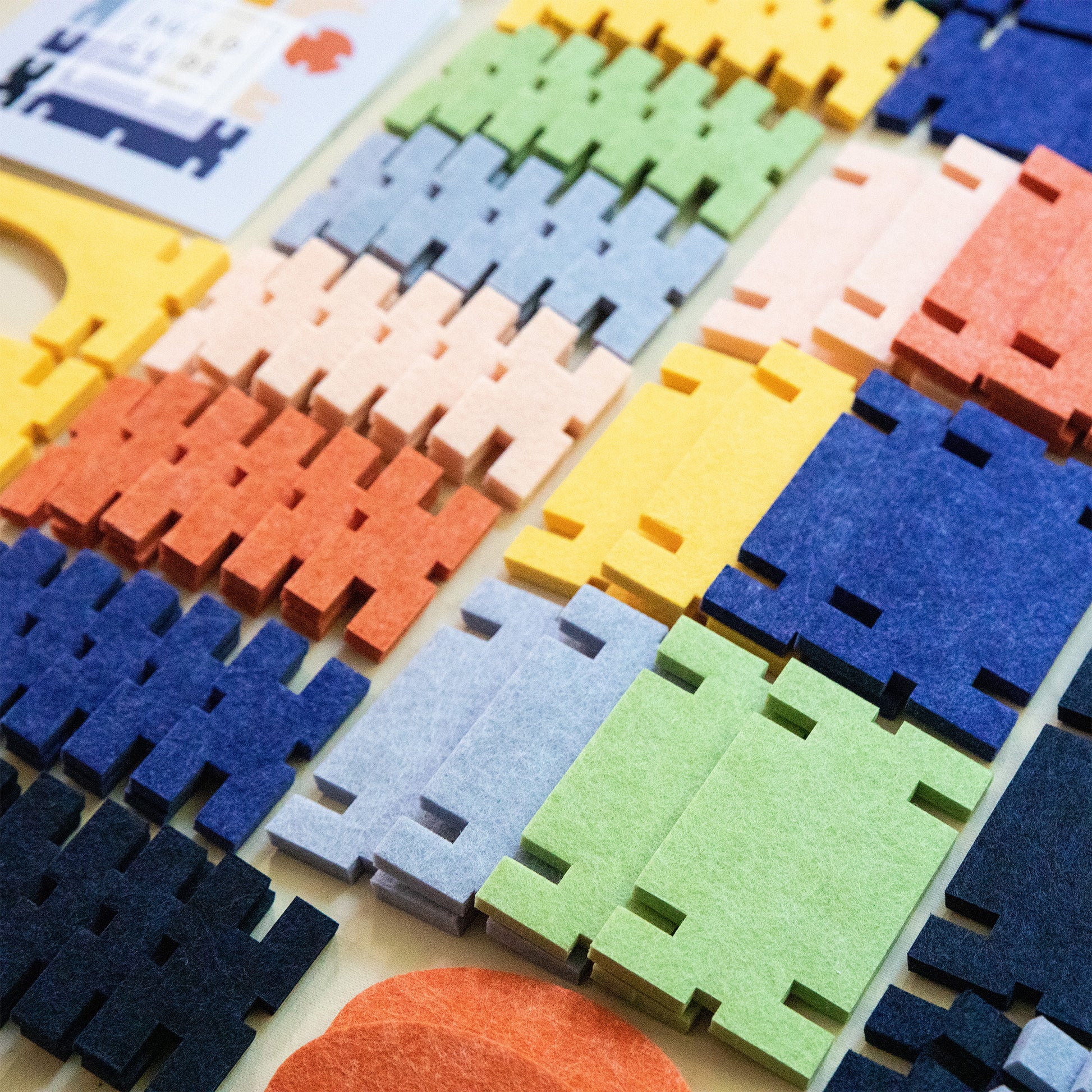 Contains 92 assorted interlocking felt blocks: